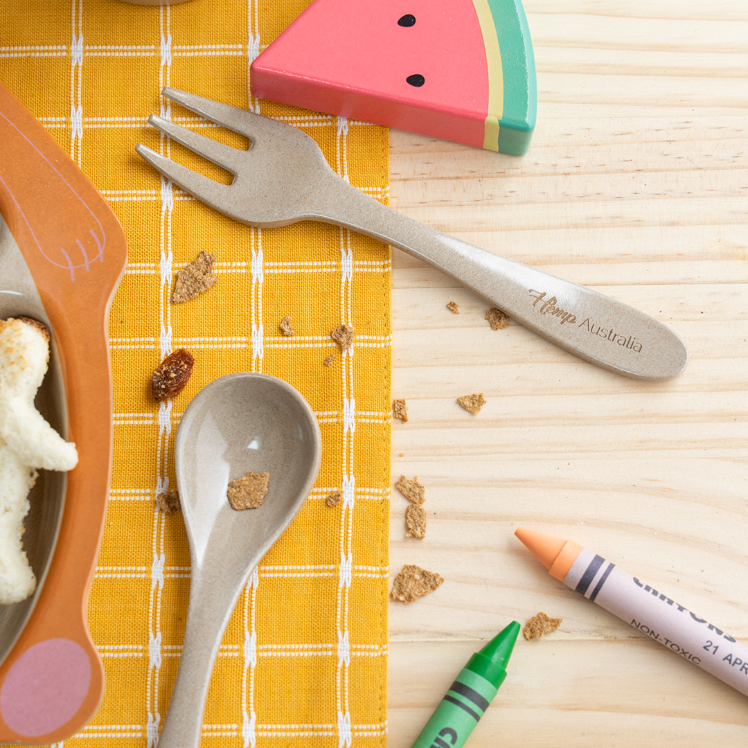 Hemp fibres and rice husk give each piece a satisfying, natural weight. The slim case keeps everything clean between meals and slips easily into a bag, desk drawer, or backpack.